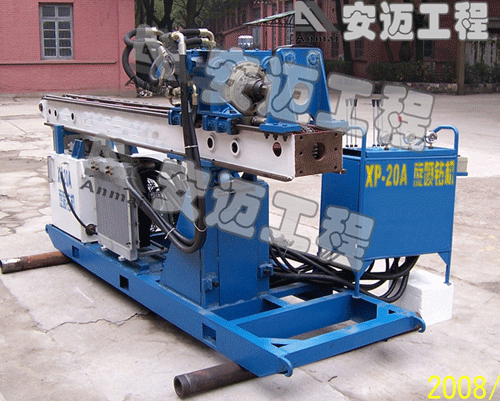 The engine of 20A high pressure drill machinery is composed of power head, operation floor, mast, oil tank, pump station and electrical cabinet. The drilling tools are made up of drill rod, shunt, drilling bit, preventing loose machine, locking devices, padding fork, and reducer union.